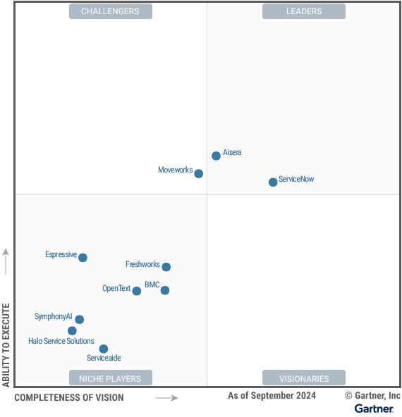 Artificial intelligence applications in IT service management are tools that use AI to augment and extend ITSM workflows to provide intelligent advice and actions for I&O leaders and their IT support teams. This Magic Quadrant evaluates 10 vendors and their AI-enabled products in this market.