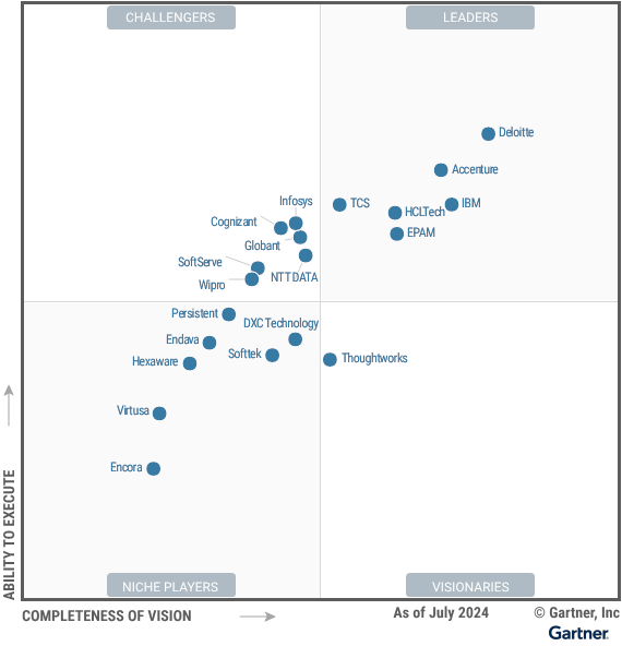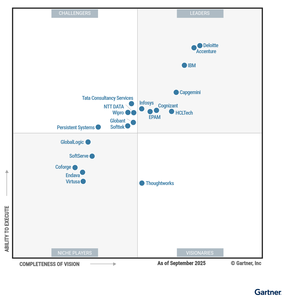 This Magic Quadrant evaluates service providers (full-spectrum and pure-play) on their ability to build innovative digital products leveraging design, AI, and expertise in other technologies. Sourcing, procurement, and vendor management leaders can use this research to identify and select potential service providers.