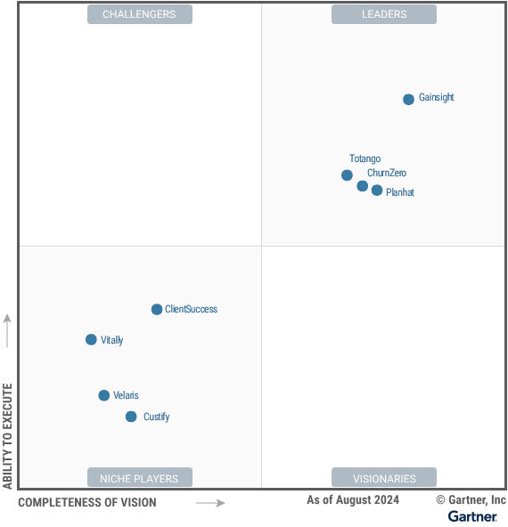 Customer success management is a crucial function for B2B organizations with recurring revenue streams. This Magic Quadrant evaluates vendors offering a CSM platform that can guide customers to value, provide visibility into customer health and scale the customer success practice.